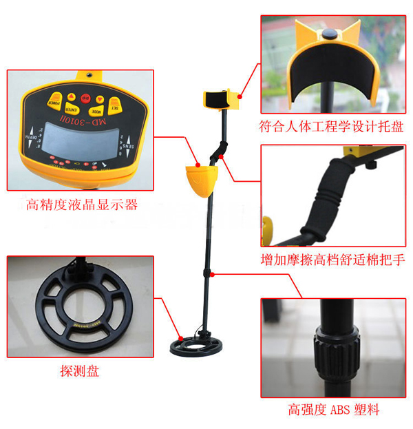 本金属探测器主要用于探测地下金属物,它除在军事上应用外还广泛用于安全检查,考古,探矿,探宝,草坪搜寻金属异物等,MD-3010II还特别适用于沙漠中寻找金属异物、金银首饰及各种硬币.