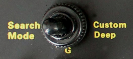 搜索模式开关:正常时开关至于G位置,为了提高灵敏度,探测到更深处的目标物体,应将开关至于DEEP位置。另外,也可以将开关一直至于DEEP位置,通过Rx Gain菜单对灵敏度进行调节。