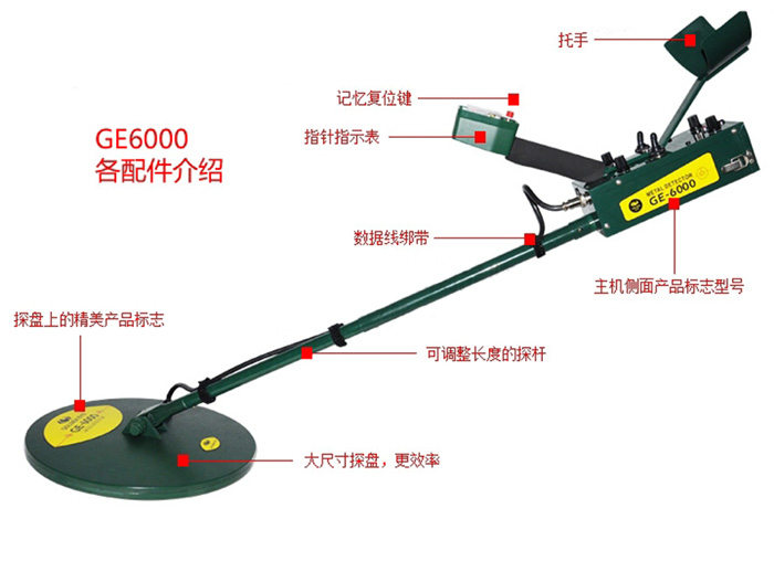 金眼GE6000加强型地下金属探测器是公司新推出的又一探测精品。采用进口原装电路板及进口机芯,选用优质元器件,它具有定位准确、分辨力强、操作方便等特点,本探测仪对金银、铜铁、锡等金属都能探测到,而对覆盖在这些金属之上的泥土、岩石.木材等物质都能穿透。产品主要是用来探测和识别隐埋在地下的金属。探测器是用的是低频,从而避免了电容效果和高灵敏度。这款仪器的操作和定位非常精确,尤其对于深埋地下的金属。