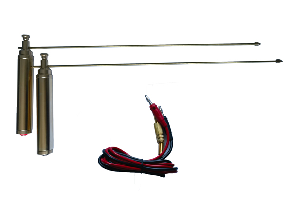 接收天线棒——天线棒旨在向操作人员指出他/她已经步入功率传感器和目标之间的传输线。正常情况下,手持天线棒要稳定和平衡,齐腰高度,以及稍微位于操作人员前方。手持天线棒时,天线棒应指向前方,相互平行,且相隔8-18英寸距离。每一个人需要找到适合自己的距离。这需要试验和出错才能找到。请记住,在操作该装置方面,沉着放松的人会比紧张僵硬的人做得好!当你进入射频能量线,测到东西的时候.天线棒将自然交叉,且雷达扫描指针会停顿在一个位置。天线交叉和雷达扫描停顿下来的时候,你看到了胜利的曙光就到来了。